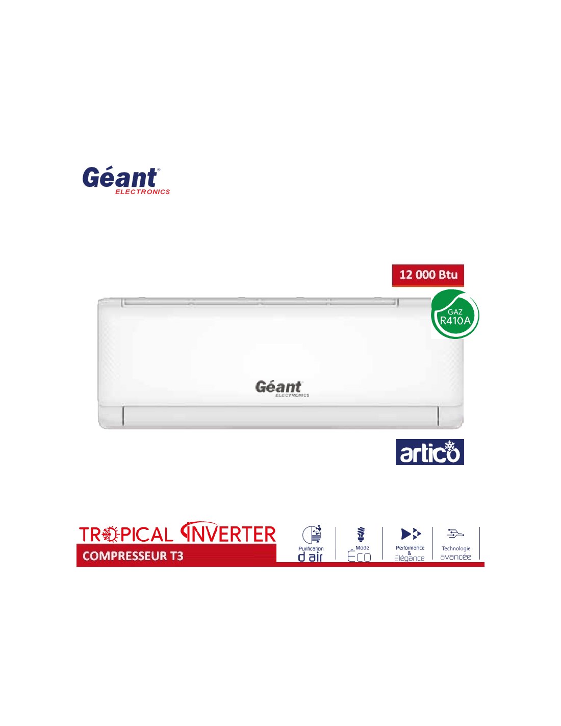 Géant Climatiseur 12000 Btu ARTICO T3 Tropical Inverter - GN-CSA12JNT3-I