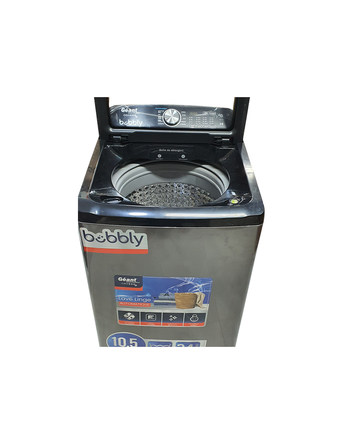 Vivez l’expérience de lavage parfaite avec la nouvelle machine à laver bubbly Top de Géant Electronics , avec de grandes fonctionnalités qui combinent des performances efficaces et un design élégant, et grâce à la fonction fuzzy contour, qui améliore les performances et l’efficacité du lavage, comme il travaille pour déterminer le type de tissu et le degré d’usure des vêtements, pour assurer un meilleur lavage.