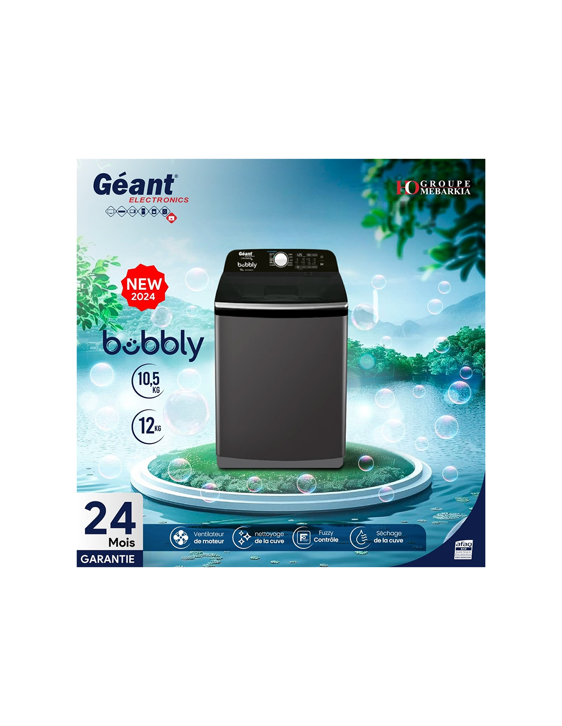 Vivez l’expérience de lavage parfaite avec la nouvelle machine à laver bubbly Top de Géant Electronics , avec de grandes fonctionnalités qui combinent des performances efficaces et un design élégant, et grâce à la fonction fuzzy contour, qui améliore les performances et l’efficacité du lavage, comme il travaille pour déterminer le type de tissu et le degré d’usure des vêtements, pour assurer un meilleur lavage.