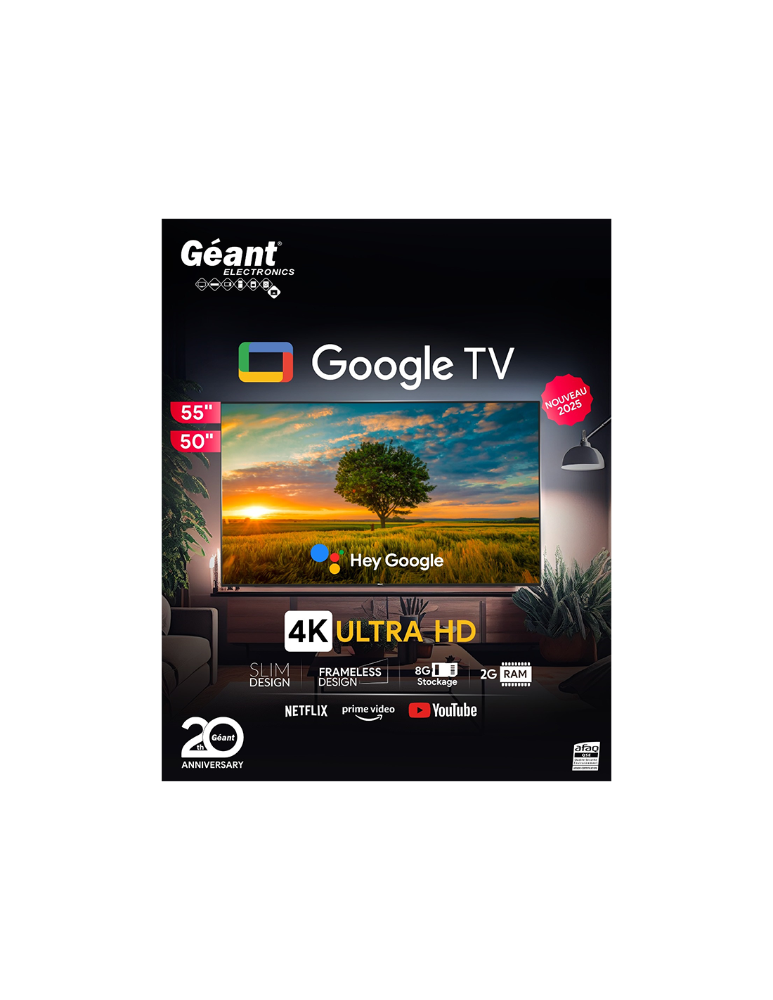 Géant Tv Smart 55" 4K UHD Google TV Frameless - GN-G55EXL4K